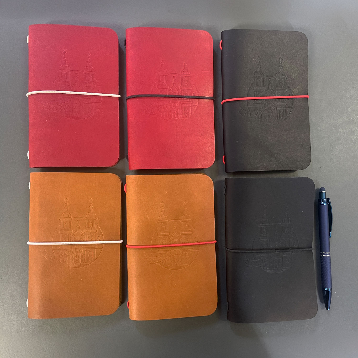 Leder Notizbuch St.Gallen – Schwarz Rot